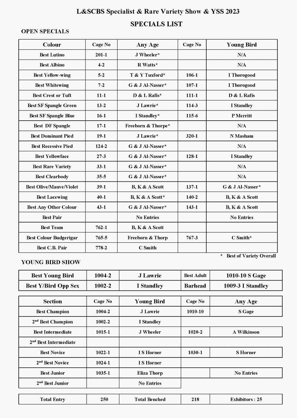 L&SCBS Specialist & Rare Variety Show & YSS 2022
