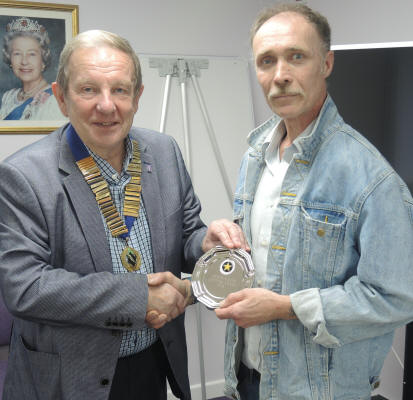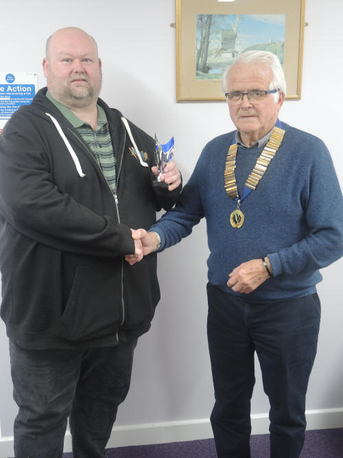 Tony Jeffrey awarding the President’s Trophy to James Folly,