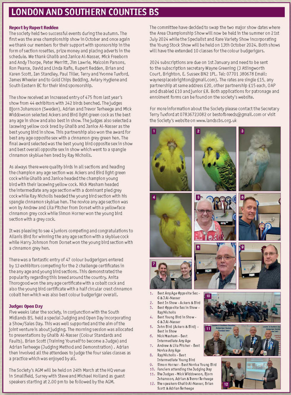 Budgerigar) joint Chelfers Award