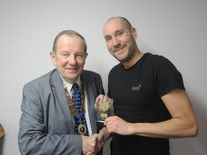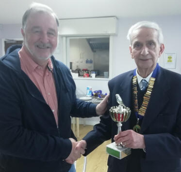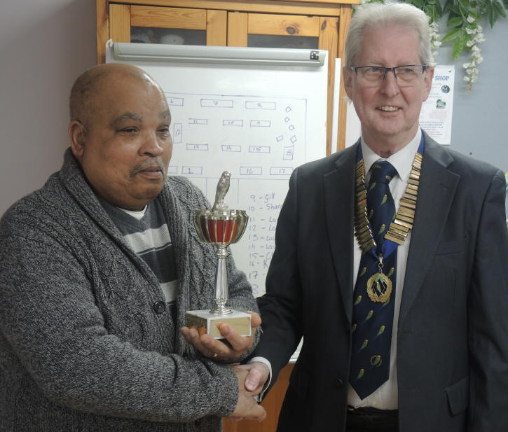 Tony Jeffrey awarding the President’s Trophy to James Folly,